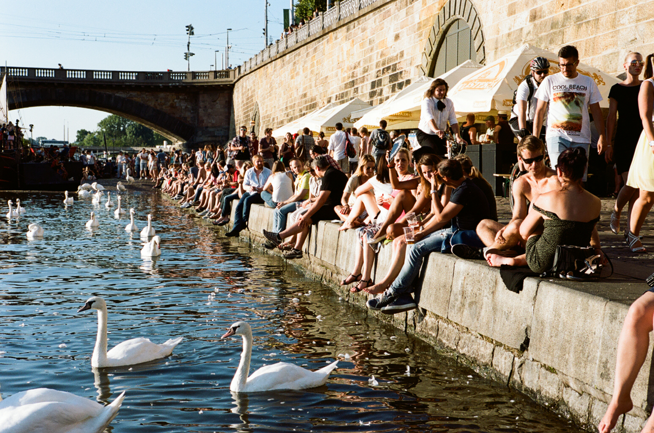 Naplavka has become the summer meeting point of a new generation of Prague residents coming from different sociocultural backgrounds but with the same identity and the same bid for liberty. Going to Naplavka after work to meet with friends around a beer in a festive and open-minded spirit has become the new Prague “Art de vivre” that people like to share among them as well as through social medias. Naplavka is representative of the rupture between the communist heritage and the emancipation of a new generation eager to free itself from this recent past. These explosions of colors and thirst for freedom are most likely due to the fact that for a long time they have been deprived of them. In the communist time, censorship and repression limited exchanges and isolated minds in a deleterious climate, reason why people gathered mainly in closed places. Generation Naplavka is colorful, curious, tolerant, hedonist but most importantly free. And nobody can rise up against this. Naplavka represents a rainbow of joy, light-heartedness, artistic vibes and laid-back atmosphere that color the city during the few warm months before diving into the greyness of winter.